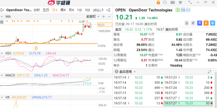 Opendoor股價一度突破10美元,該股漲超14%,消息面上,該公司表示計劃在未來幾周內擴展產品服務範圍,以便能夠在整個美國本土提供相關服務。