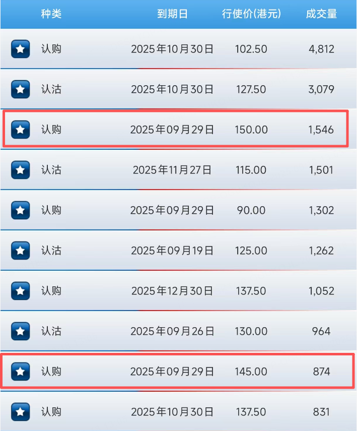 百度上午的前十大期權成交中,認購合約佔比略高,其中兩份9月底到期的CALL,行權價分別爲150港元及145港元,較現價有6%以上的漲幅空間。