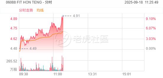 蘋果概念股普遍上漲。其中,FIT HON TENG 短線拉昇漲超10%,丘鈦科技漲近5%,高偉電子漲超3%,藍思科技漲超2%,富智康集團漲超1%。
