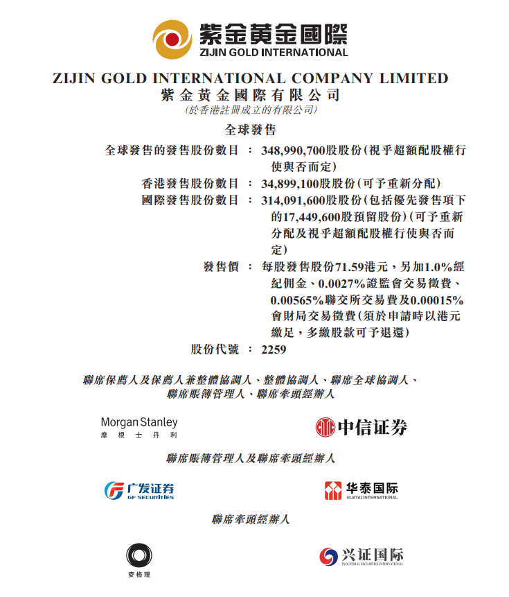 華盛資訊9月19日消息,黃金儲量全球第九的紫金黃金國際(02259)、中國最大金錶品牌西普尼(02583)兩隻新股今起招股,預期將於9月29日掛牌上市。