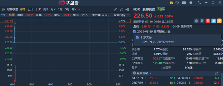 聯邦快遞盤前漲超5%,公司第一財季業績超預期,並恢復全年業績指引。