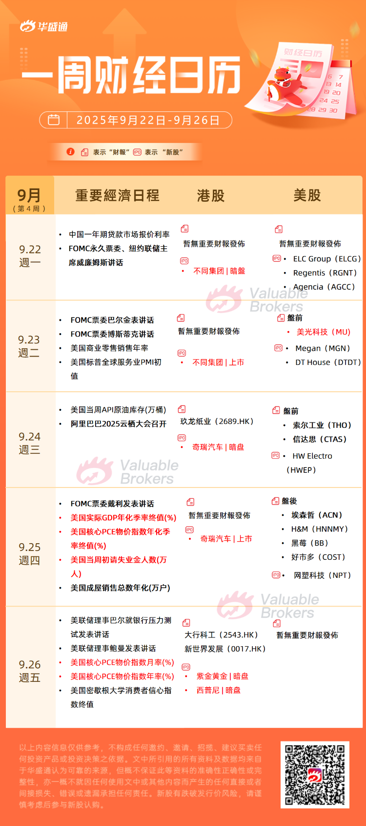 美股方面,預計下週有7家新股上市: 週一(9.22): $ELCG 、 $RGNT 、 $AGCC 週二(9.23): $MGN 、 $DTDT 週三(9.24): $HWEP 週四(9.25): $NPT |