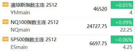 9月19日,美股三大股指期貨上漲,截止發稿,道指期貨漲0.01%,納指期貨漲0.09%,標普500指數期貨漲0.06%。
