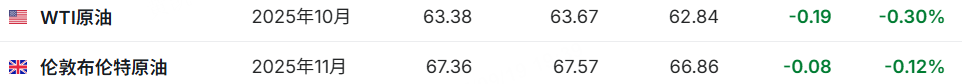 原油期貨下跌,截止發稿,WTI原油跌0.30%,報63.38美元/桶;布倫特原油跌0.12%,報67.36美元/桶。