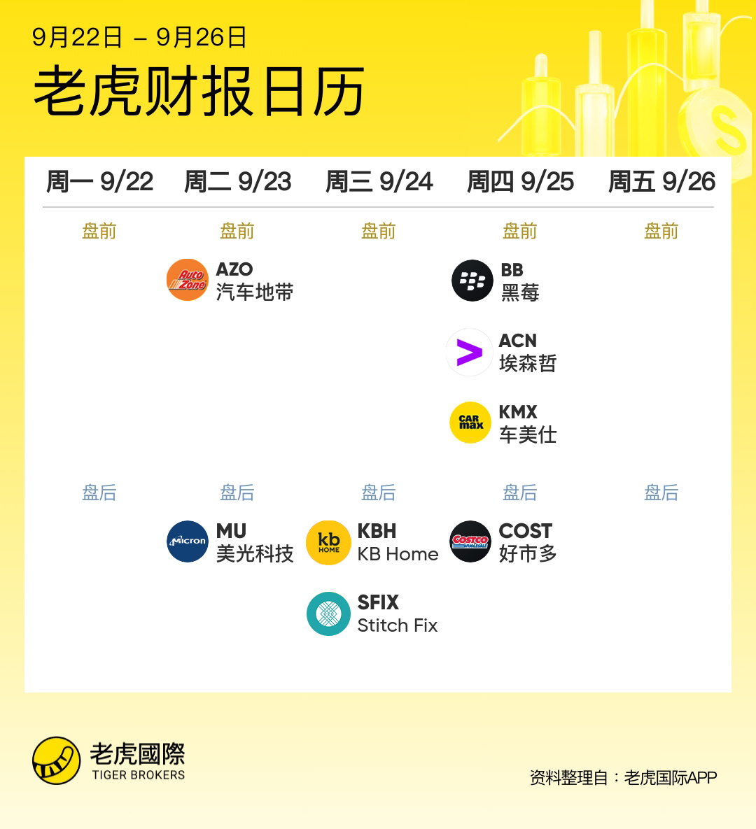 公司業績:本週美光科技、好市多、黑莓、埃森哲等公司將公佈最新季度業績;