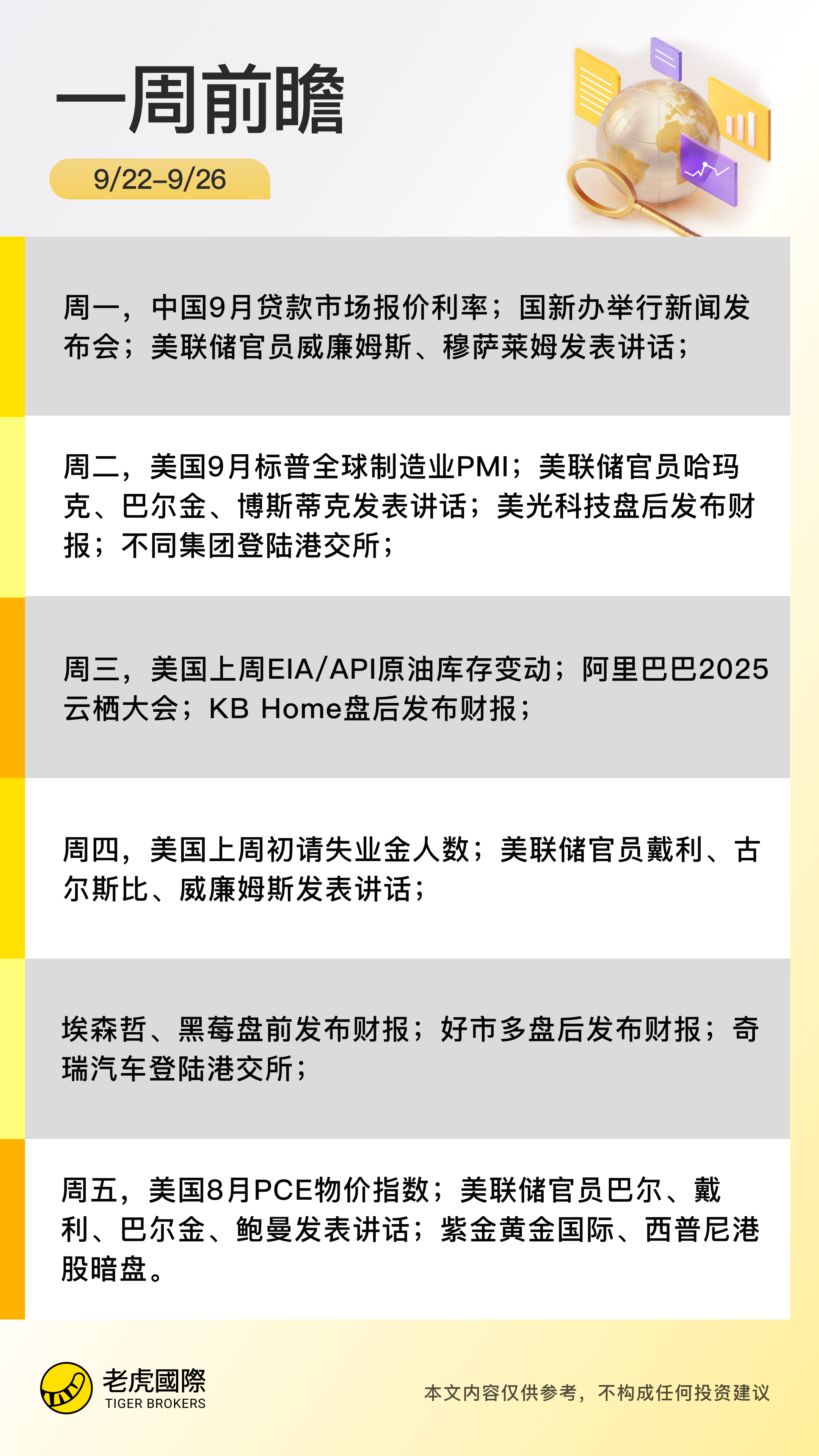週一 21:45,FOMC永久票委、紐約聯儲主席威廉姆斯就貨幣政策和經濟前景發表講話;22:00,2025年FOMC票委、聖路易聯儲主席穆薩萊姆就美國經濟前景和貨幣政策發表講話;