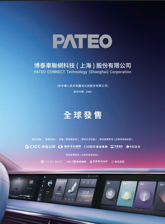 中國智能座艙解決方案供應商 博泰車聯 (02889)今日起至週四(9月25日)招股,發售1043.69萬股H股,香港公開發售佔10%,其餘爲國際配售,每股招股價102.23港元,集資最多10.67億港元該股預期9月30日掛牌。聯席保薦人包括中金公司、國泰君安、招銀國際、華泰國際及中信証券。