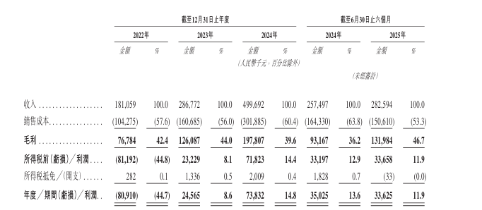 2022-2024年毛利率分別爲42.4%、44%、39.6%。2025年上半年毛利率爲46.7%。