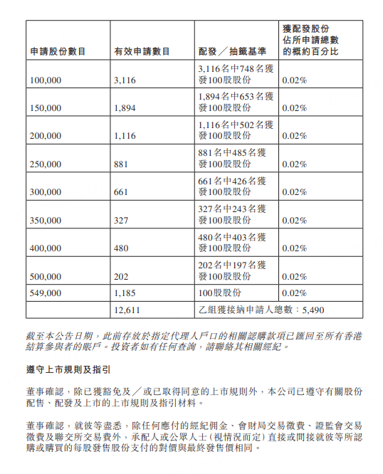 不同集團 (06090.HK)公佈招股結果,公開發售接獲3,317.47倍認購,一手(100股)中籤率1%,認購54.9萬股始獲穩派一手。國際發售錄得7.37倍認購。最終發售價71.2港元,上限定價,集資淨額7.18億港元。股份預期今日(23日)上市。