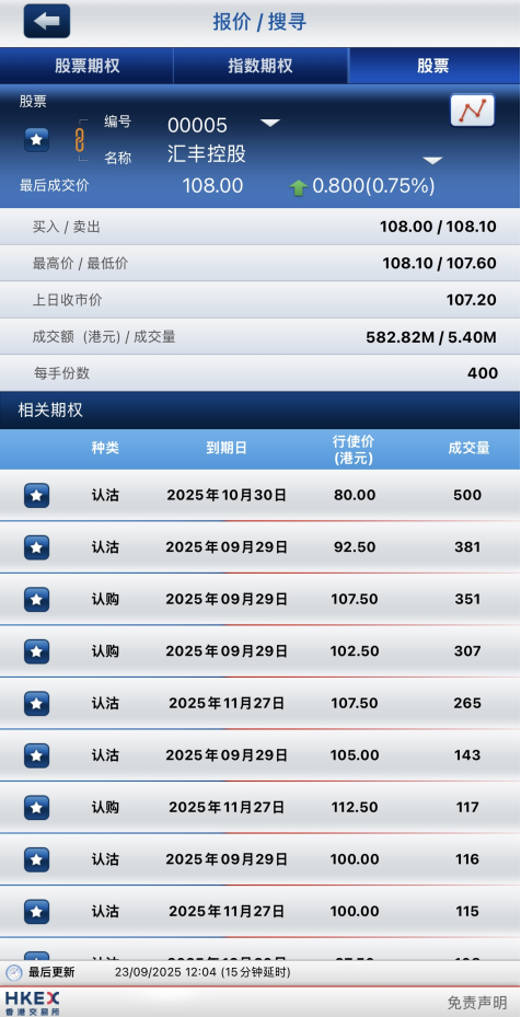 滙豐控股早盤漲0.75%,期權方面:10月30日到期行權價80港元的認沽期權成交量居前,成交500張合約。