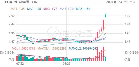 氫燃料電池公司 普拉格能源 大漲12%,昨日漲超21%,自9月10日以來漲幅超110%。