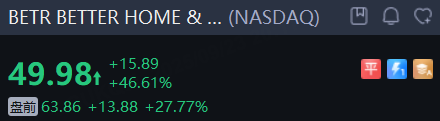 Better Home & Finance 續漲超27%,隔夜暴漲超46%。此前對沖基金EMJ Capital創始人Eric Jackson在社交媒體上發文稱這家數字房屋所有權公司是“抵押貸款領域的Shopify”。