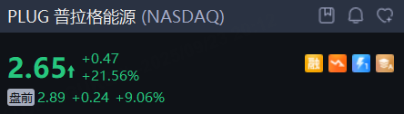 氫能源公司 普拉格能源 大漲超9%,昨日漲超21%,自9月10日以來漲幅約88%。