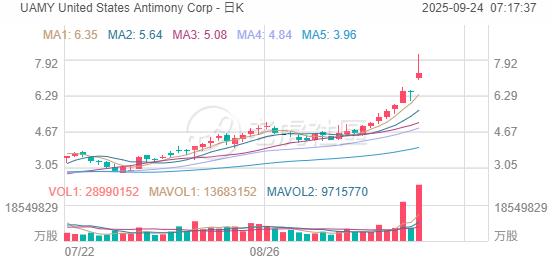 9月24日,美國銻業公司週二表示,已從美國國防後勤局獲得一份爲期五年的獨家合同,總額最高可達2.45億美元,用於供應銻金屬錠,以補充國防物資儲備。受此消息提振,美國銻業隔夜股價盤中一度飆漲逾25%,截至收盤,收漲逾13%。