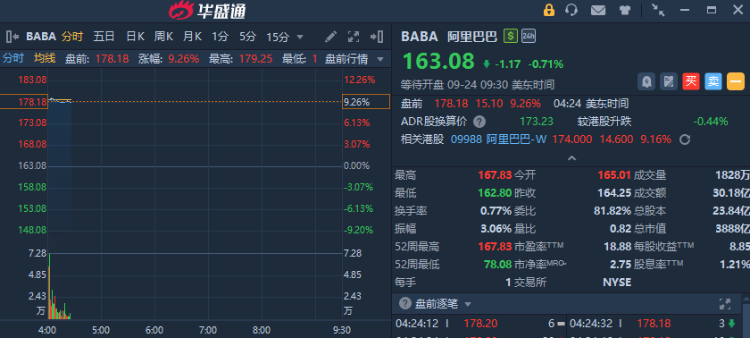 熱門中概股盤前集體走強,阿里巴巴大漲超9%,消息面上,阿里CEO吳泳銘稱資本開支會在3800億基礎上增加更多的投入。