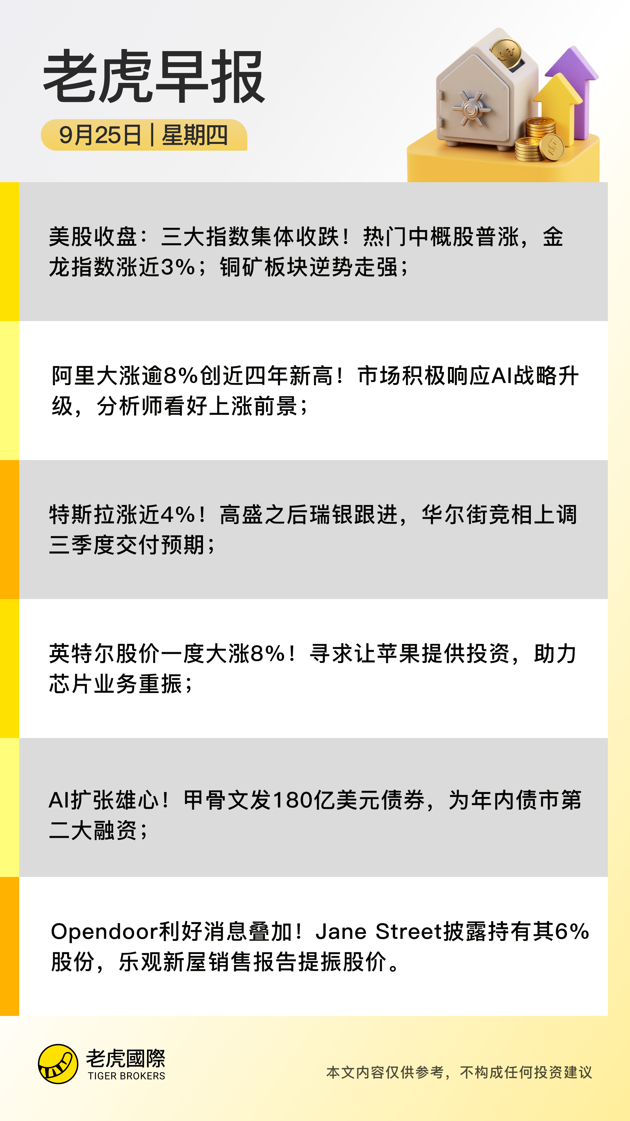美股收盤:三大指數集體收跌!熱門中概股普漲,金龍指數漲近3%;銅礦板塊逆勢走強