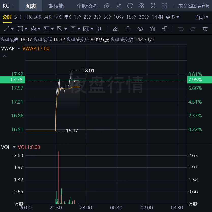 美股夜盤|熱門中概股延續強勢!金山雲漲8%,嗶哩嗶哩、萬國數據漲超5%