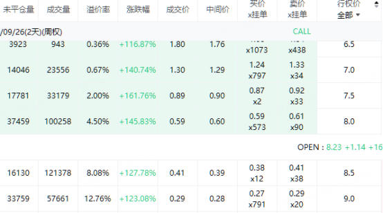此外,多張明日到期行權價6.5-9美元的看漲期權最低漲幅翻倍。
