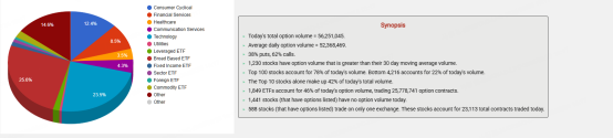 期權市場總成交量56,251,045張合約,總成交量持續下探但仍高於90日平均,其中看漲期權佔比爲62%。