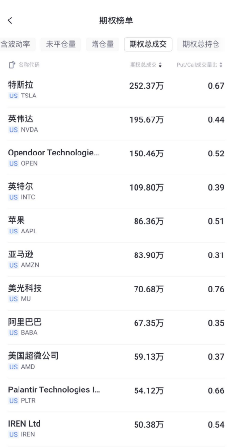 昨日,Opendoor大漲超15%,期權合約成交較90日平均上漲2.4倍達1,485,219張。其中明日到期的8.5美元看漲期權交易量較高,共有121,116份合約交易。