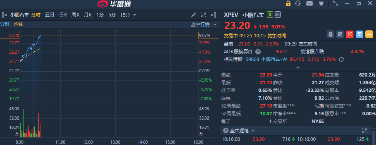 華盛資訊9月25日消息,熱門中概股多數走強,小鵬汽車大漲超9%,領漲中概股;消息面上,公司此前與阿里雲簽署後量子安全技術合作協議。