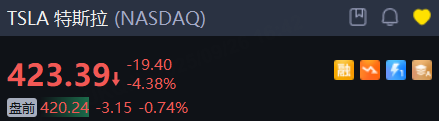 特斯拉 盤前跌約0.7%,昨日大跌超4%,創兩個月以來最大單日跌幅。