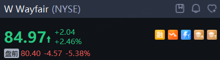 傢俱零售商 Wayfair盤前跌超5%。美國總統特朗普週四宣佈,自10月1日起,美國將對所有廚櫃、浴室梳妝檯及相關產品徵收50%的關稅,對軟墊傢俱徵收30%的關稅。