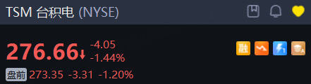 同時,臺積電盤前跌1.2%,邁威爾科技跌1.87%,高通跌0.4%,英偉達跌約0.7%,AMD跌0.8%;美光科技則漲0.8%。