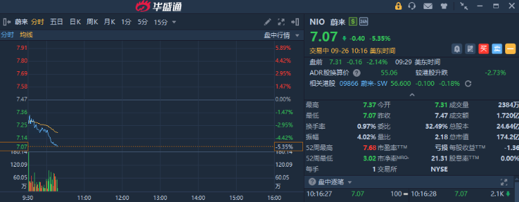華盛資訊9月26日消息,熱門中概股集體走弱,蔚來、嗶哩嗶哩跌超5%,網易、百度、微博跌超2%,阿里巴巴、京東跌超1%。