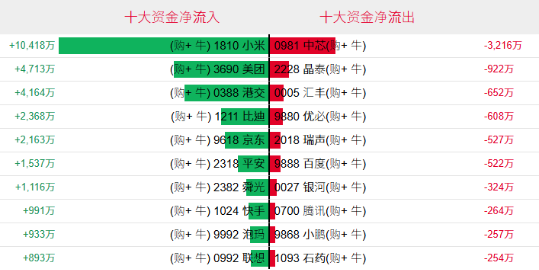 好倉(認購證及牛證)方面,過去5日,小米集團相關好倉錄得約1.04億港元資金淨流入,爲最大資金流入標的,美團、香港交易所和比亞迪等相關好倉也分別約4713萬、4164萬以及2368萬港元資金淨流入部署;中芯國際、晶泰控股、滙豐控股等相關好倉則分別約3261萬、922萬及652萬港元資金淨流出套現。