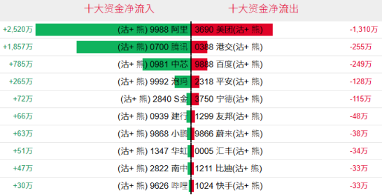 淡倉(認沽證及熊證)方面,近5日合計,阿里巴巴、騰訊控股、中芯國際等相關淡倉分別約2520萬、1857萬及785萬港元資金淨流入部署;美團、香港交易所及百度等相關淡倉則分別約1310萬、255萬港元及249萬港元資金淨流出。
