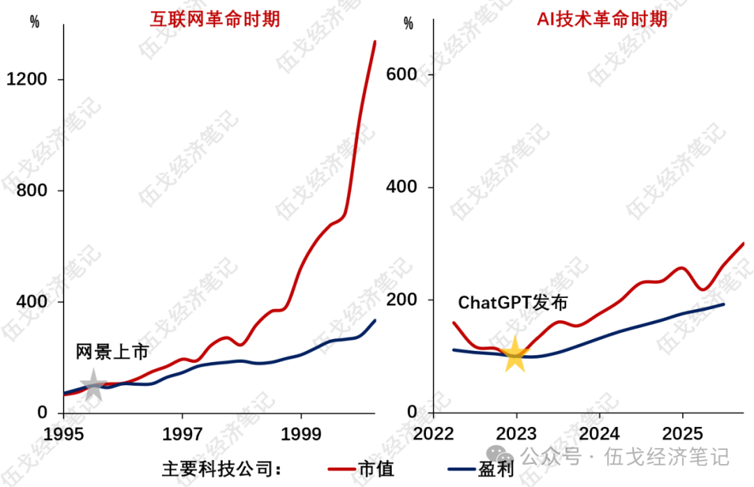 注:選取標普500指數的權重科技公司,市值和盈利爲較基期的比值。