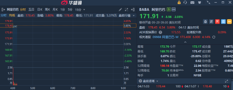 熱門中概股盤前走強,阿里巴巴漲近4%,此前獲摩根士丹利上調資本開支預測,並預計雲業務將進一步增長。