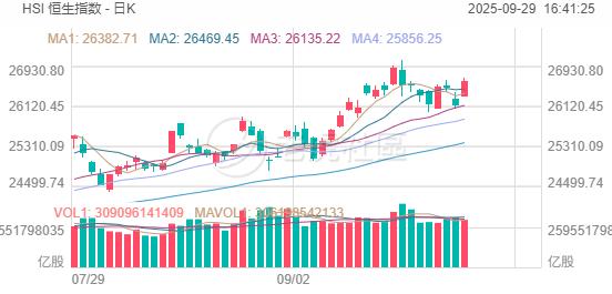 9月29日,港股三大指數午後漲幅再度加大,在券商、保險、地產拉昇助力下,恒生指數最終收漲1.89%上揚近500點,再度重回26500點上方,國企指數漲1.62%,恒生科技指數漲2.08%,三者近乎收回上週五跳水跌幅。