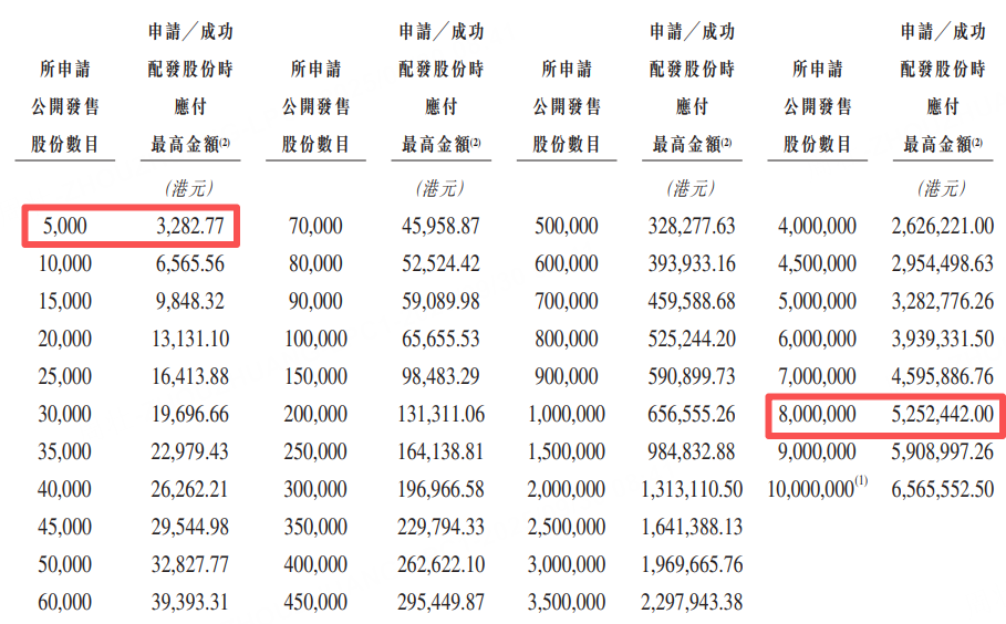 乙組門檻爲800萬股,申購所需資金約525.24萬港元。