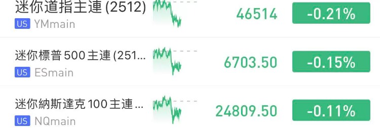 美股三大指數期貨盤前下跌,納指期貨 $NQmain 跌0.11%,標普500期貨 $ESmain 跌0.15%,道指期貨 $YMmain 跌0.21%。