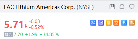Lithium Americas盤後漲近35%,獲美國政府入股支持內華達鋰礦項目