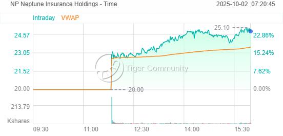 洪水保險公司 Neptune Insurance Holdings 在通過美國首次公開募股(IPO)籌集了3.684億美元后,股價大漲24%。