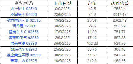 從9月新上市股份來看,10只新股認購額悉數超100倍,其中大行科工更是達到7558.4倍,成爲月度超購王,同時超過了毛記葵涌的6289倍,成爲港股史上超購王。
