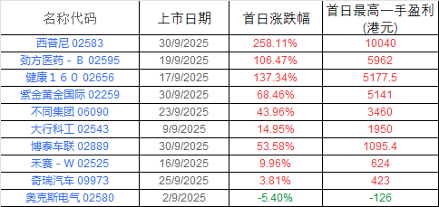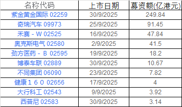金吾財訊 | 2025年9月港股IPO市場延續強勢復甦態勢,單月迎來10只新股掛牌,募資總額達478.38億港元,市場熱度與賺錢效應顯着提升。值得注意的是,9月30日三股同日上市,紫金黃金國際、西普尼等新股首日漲幅均超50%,其中西普尼大漲258%,創年內新股漲幅紀錄。