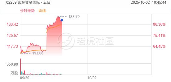 紫金黃金國際上市次日股價再漲13%,該股上一交易日大漲逾68%。