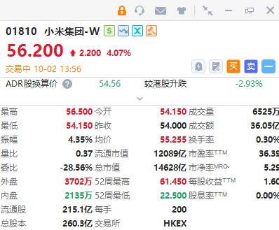 華盛資訊10月2日訊,小米集團-W漲幅擴大至4%。小米(01810)總裁盧偉冰今日於微博發文表示,很多朋友都非常關心小米17系列的銷售進展,目前銷量確實已超過100萬臺,比往代速度更快!公司正在抓緊提拉生產,增加備貨。