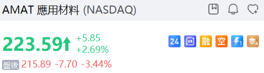 消息公佈後,應用材料股價在盤後交易中一度下跌5.6%,現在跌逾3%,此前收盤價上漲2.7%,報223.59美元。