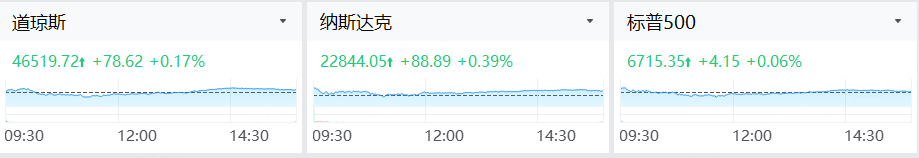 週四(10月2日),美股三大指數收漲,納指、標普再創新高。截至收盤,道瓊斯指數漲0.17%,報46519.72點;標普500指數漲0.06%,報6715.35點;納斯達克綜合指數漲0.39%,報22844.05點。