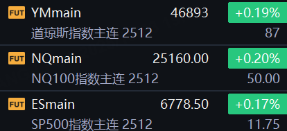10月3日,美股三大股指期貨齊漲,截止發稿,道指期貨漲0.19%,納指期貨漲0.2%,標普500指數期貨漲0.17%。