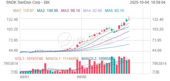 資本市場對近期存儲芯片行情的變化給出了直接反饋,多家廠商股價持續刷新歷史最高值。最近一個月, 美光科技 股價累計上漲約60%;自8月21日以來,SanDisk股價累計上漲約190%。從行業角度來看,摩根士丹利的最新研報預測,人工智能熱潮下,存儲芯片行業預計迎來一個“超級週期”。