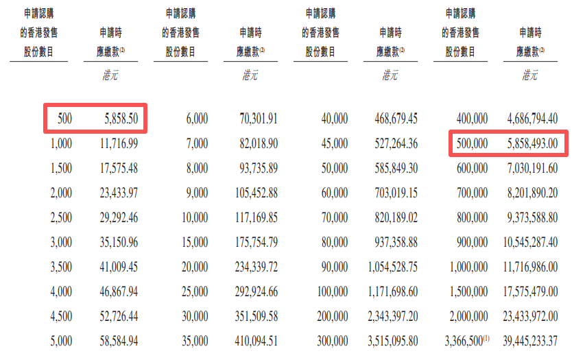 乙組門檻爲50萬股,申購所需資金約585.85萬港元。