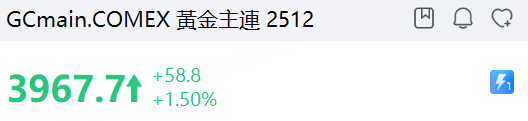 期貨黃金現報3967美元/盎司,升幅1.5%,亦創新高。