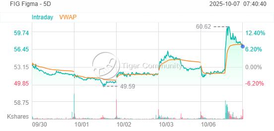 Figma股票表現尤其亮眼,盤中一度上漲16.4%,最終收漲7.4%。
