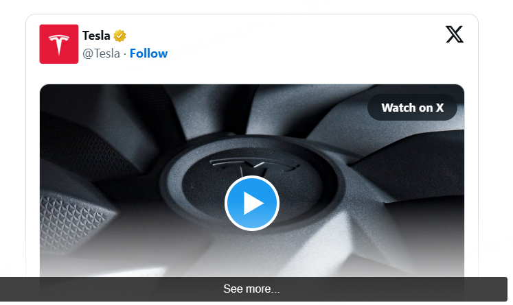 股價上漲的邏輯在於,特斯拉在推特上發佈了一條預告“週二將有重大公告”的推文,並附上一段視頻,視頻中出現了一個帶有特斯拉標誌的旋轉輪狀物。